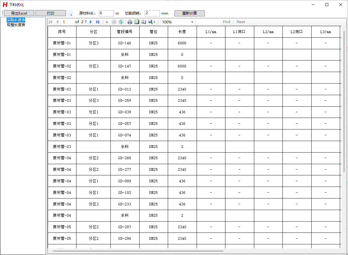 一键计算预制下料清单,按照原材料长度和切割损耗进行优选,并按切割数、余料数最少,双目标控制;